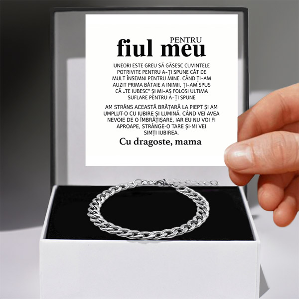 AM STRÂNS ACEST LANȚ LA PIEPT ȘI L-AM UMPLUT CU IUBIRE ȘI LUMINĂ. CÂND VEI AVEA NEVOIE DE O ÎMBRĂȚIȘARE, IAR EU NU VOI FI APROAPE, STRÂNGE-L TARE ȘI-MI VEI SIMȚI IUBIREA.