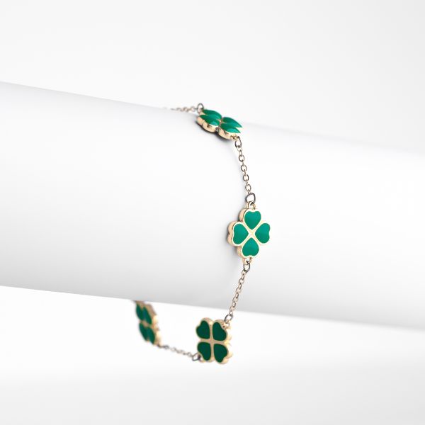 🍀 Brățară norocoasă cu patru trifoi – o brățară elegantă cu simboluri shamrock care reprezintă norocul și energia pozitivă.