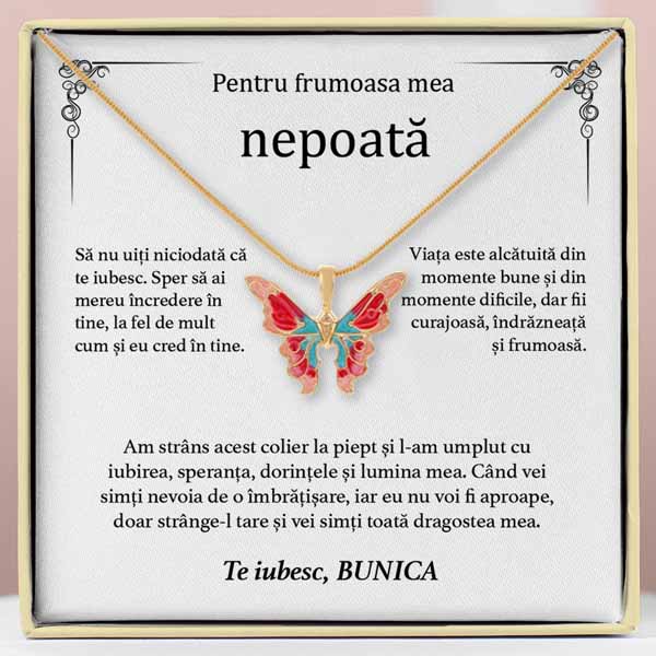 Design unic: Colierul nostru se mândrește cu un pandantiv colorat în formă de fluture, care este atât elegant, cât și drăguț. Procesul de picurare a uleiului îi infuzează un spectru de culori vibrante, făcându-l o adevărată operă de artă. 🌈🖌️