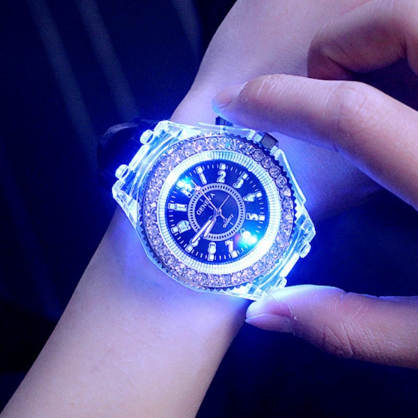 Alimentat de o mișcare cu cuarț și o unitate electronică, acest ceas garantează o cronometrare precisă, încorporând în același timp o tehnologie LED inovatoare pentru a vă ilumina calea în mediile slab luminate. Se aprinde și își schimbă culorile, adăugând o notă încântătoare look-ului dvs.
