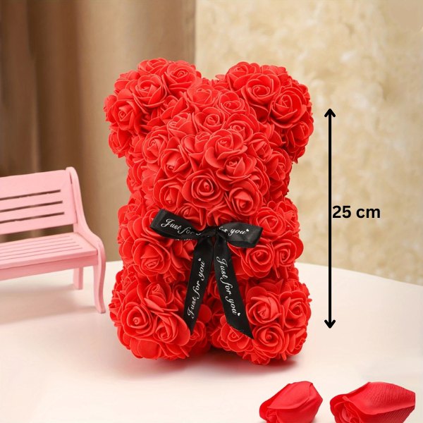 Acest ursuleț adaugă eleganță fiecărei încăperi. Indiferent dacă este expus pe noptieră, pe o poliță sau în colțul livingului, designul său delicat și trandafirii minunați vor învia orice spațiu, creând un punct focal uimitor care va înfrumuseța orice cameră.
