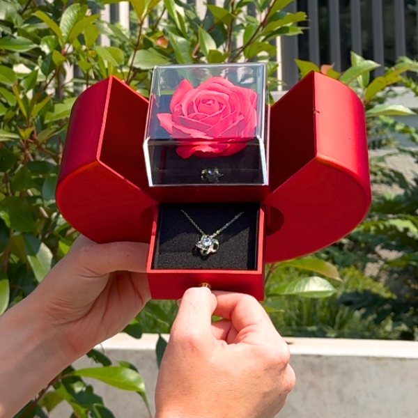 Încă ceva special… 😉 Acest colier frumos vine într-o cutie în formă de măr 🍎, care nu este doar un spațiu de depozitare, ci și un simbol al ispitei dulci a iubirii. 💌 Cutia are un compartiment secret care vă protejează colierul strălucitor. 🎀 💫