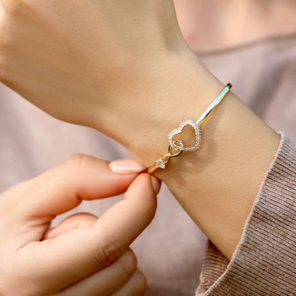 Brățara combină un simbol al infinitului cu un motiv de inimă, reprezentând dragostea veșnică și legătura inseparabilă.