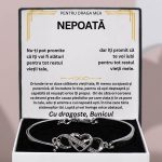 O inimă cu simbolul infinitului îi va aminti întotdeauna cât de mult o iubești, deoarece va purta acest simbol al iubirii aproape de inimă. Este o amintire frumoasă a dragostei tale care va rămâne mereu alături de ea, indiferent de distanță.